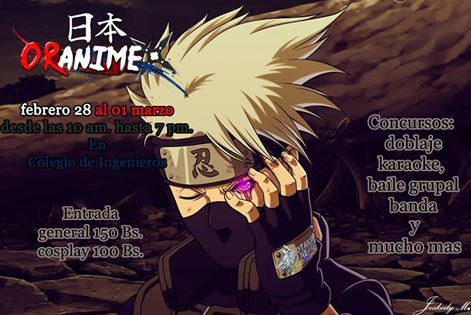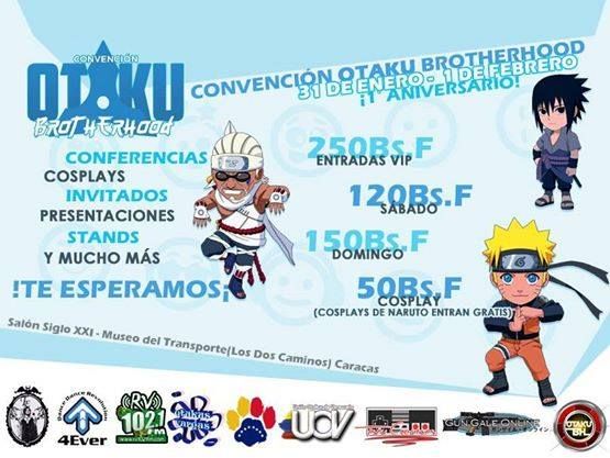 Precios: Sábado 120BsF / Domingo: 150BsF / Cosplay: 50BsF (Los que se hagan Cosplay de Naruto entran gratis)