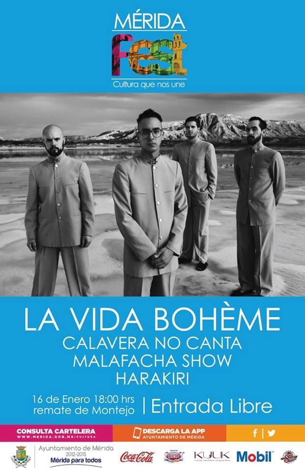 La Vida Bohéme ya ha anunciado hace dos horas en su Facebook, nuevas presentaciones para este 2015. Lo ganadores de 2 premios Grammy actuarán el Jueves 15: Campeche, MX - Venue (está por confirmar), el Viernes 16: Mérida, MX - @RemateDeMontejo // Entrada Libre y el Sábado 17: Mérida, MX - D E L O R E A N | santuario sonoro. Aún no han mencionado a Venezuela entre sus planes, solo es cuestión de esperar.